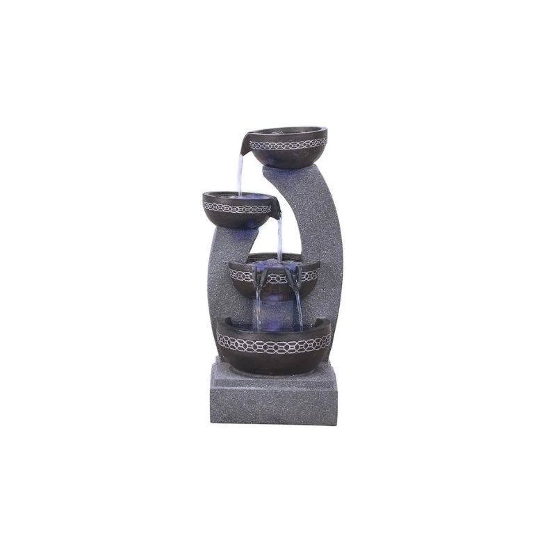 - Greek inspired cascading bowl design,Mock-stone finish with soft blue lighting for ambient effect.