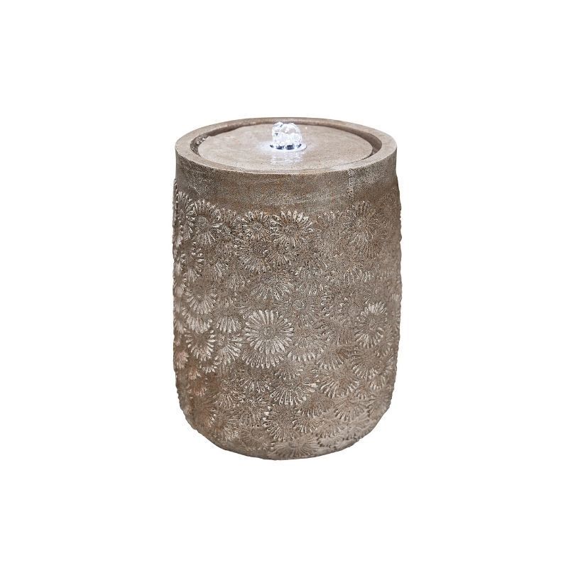 - Softly lit bubbling water flows over the saucer surface