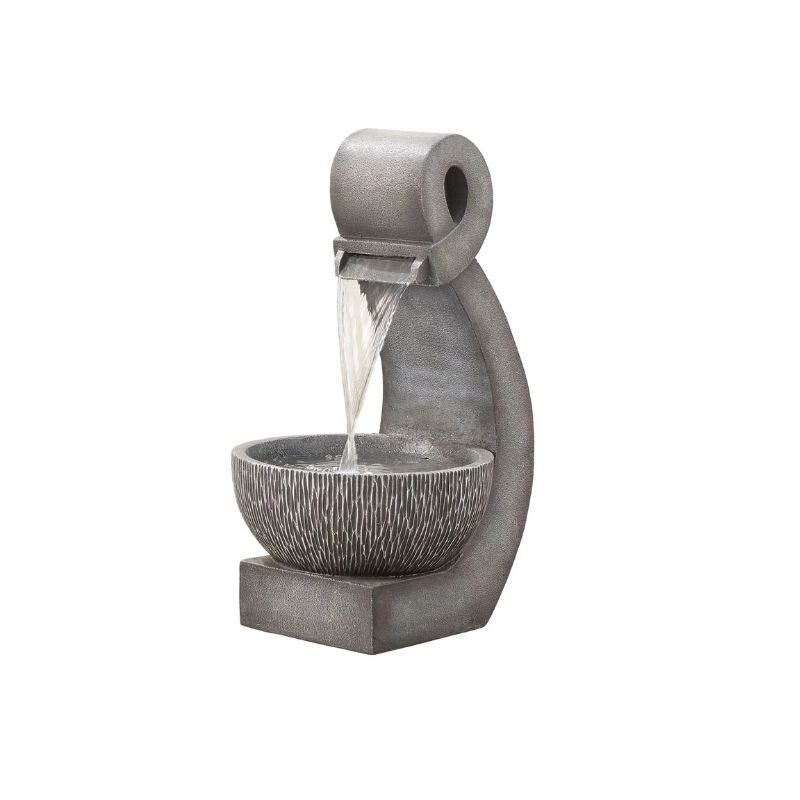 - Water spills in to a large illuminated bowl, to create a tranquil setting day to night