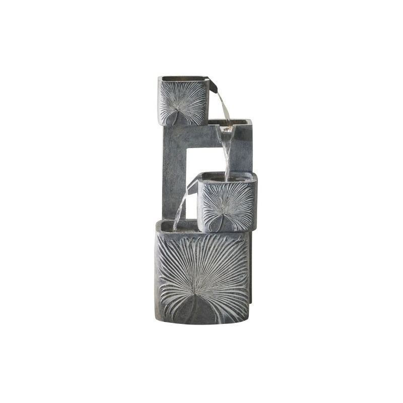 - Contemporary grey stone-effect tiered Water Feature with an etched Palm design