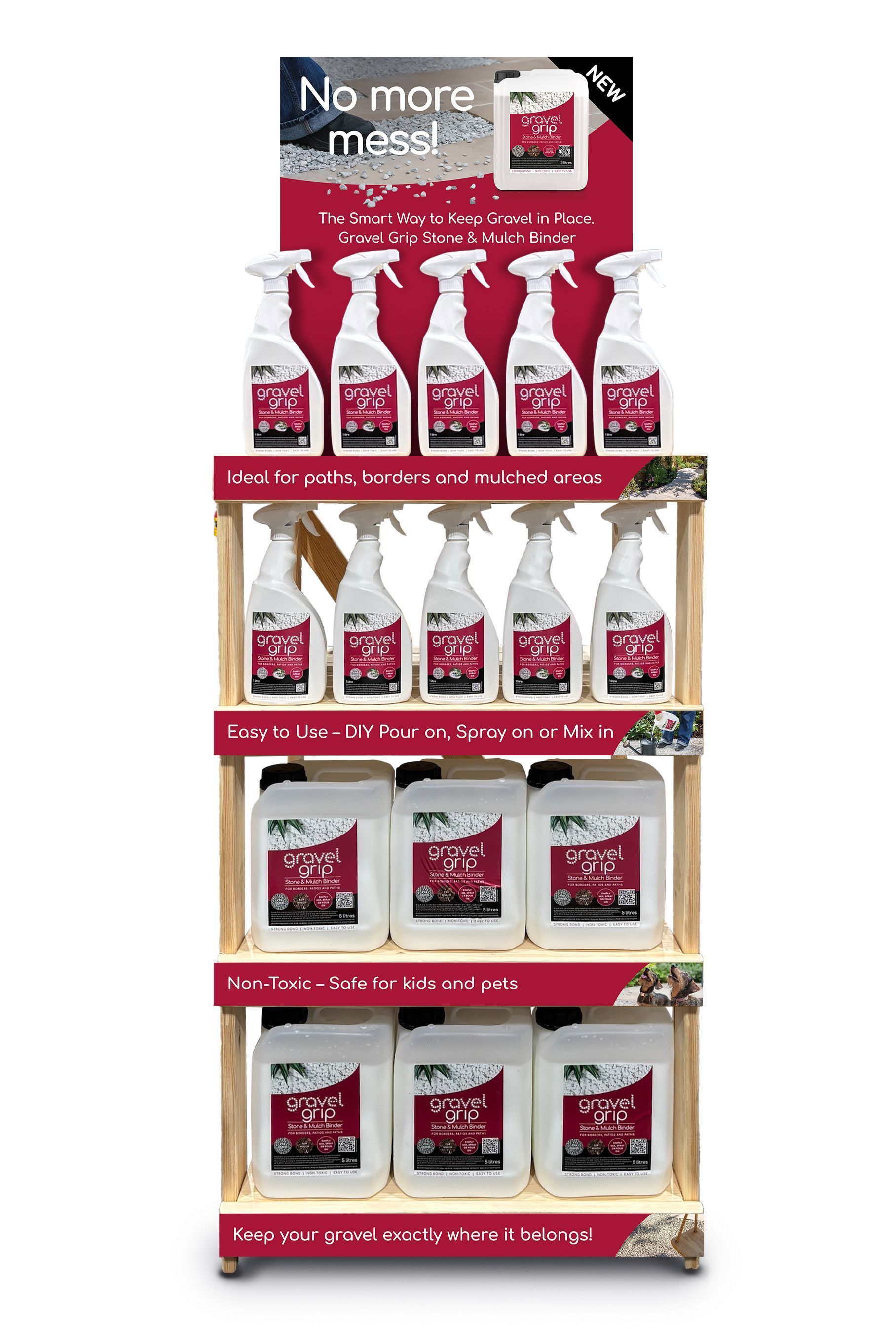 Gravel Grip is a premium non-toxic water based stone binder that locks gravel and mulch in place and keeps your garden looking neat and tidy.