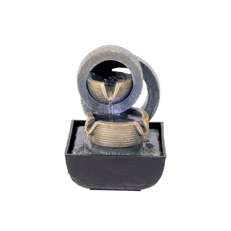 Fossil brown tones create a sophisticated and timeless design, with cascading water and integrated LED lights to illuminate your garden.